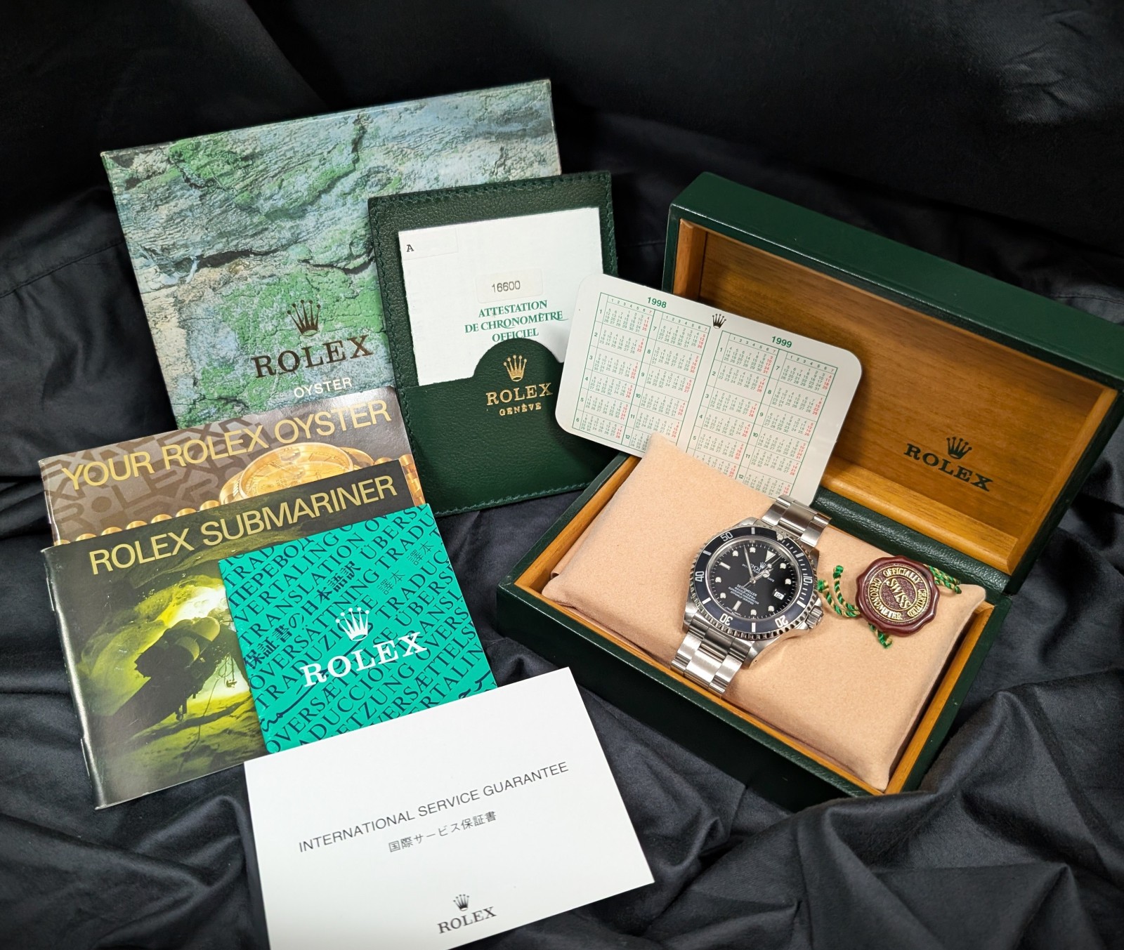 NOTE: The serial numbers have been blurred in the photos for security and privacy. They are fully present on the actual watch, warranty card, and corresponding paperwork if applicable.