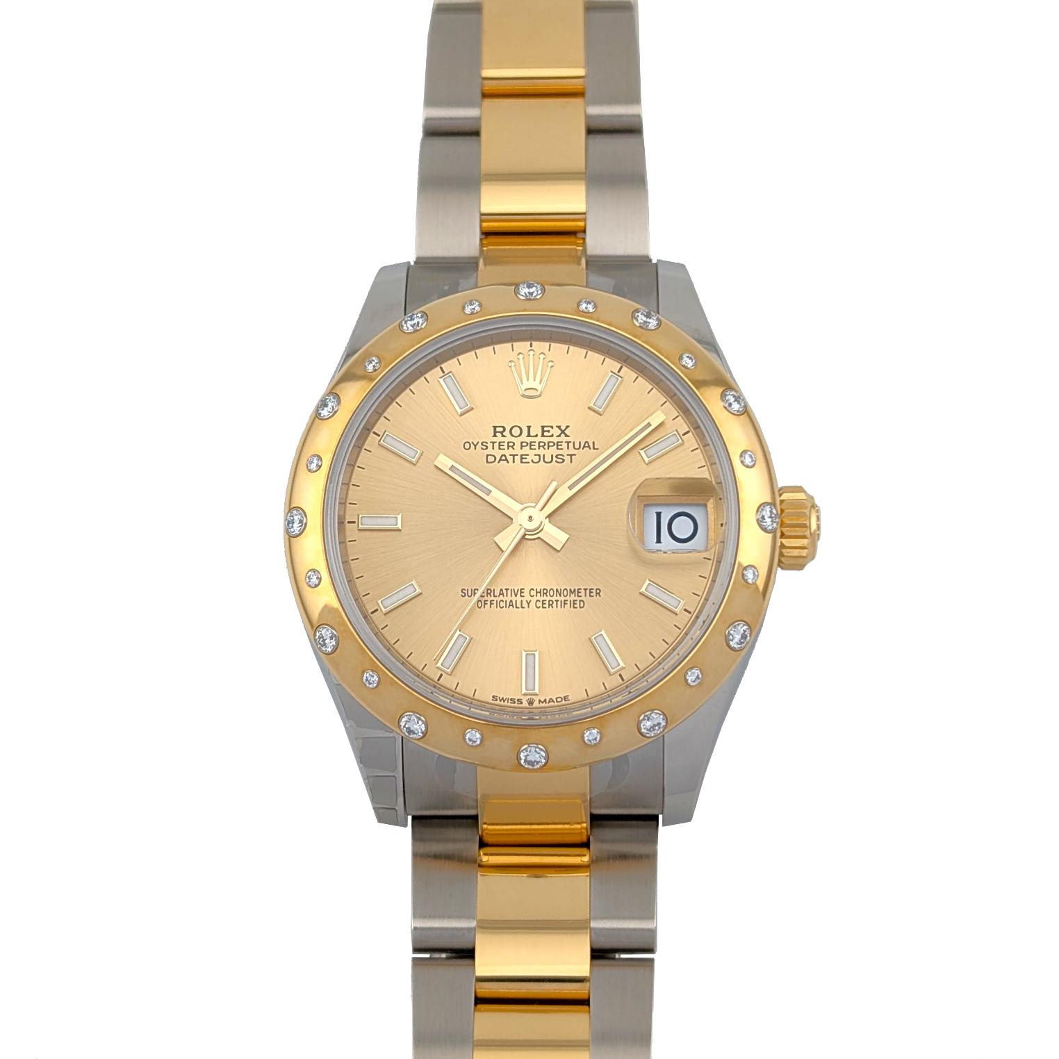 Model: Datejust 31 – Gold Sunburst Dial, Diamond-Set Bezel